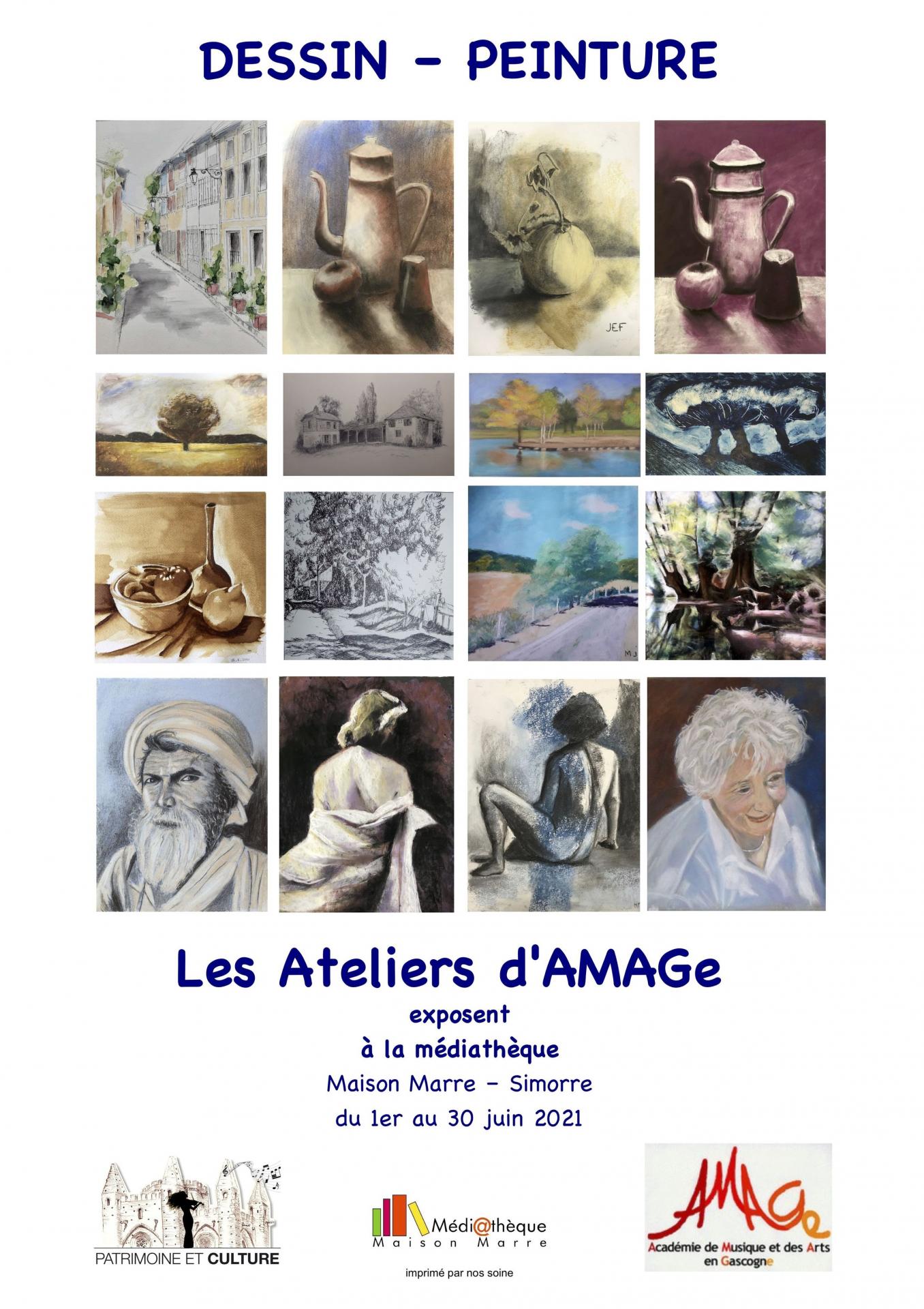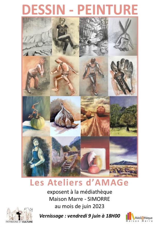 Exposition de fin d'année des ateliers d'arts plastiques d'Amage, dessin, peinture et powertex.